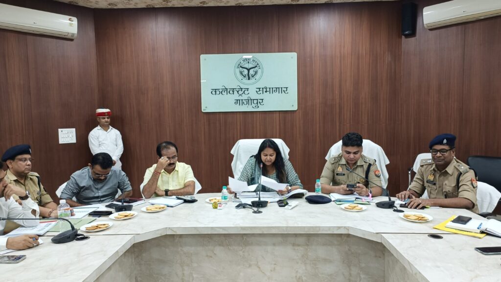 गाजीपुर 24 अक्टूबर, 2024 (सू0वि0)- जनपद मे आगामी त्यौहार धनतेरस, दीपावली, गोवर्धन पूजा, डाला छठ, देव दीपावली की सुरक्षा व्यवस्था के दृष्टिगत जिलाधिकारी आर्यका अखौरी की अध्यक्षता एवं पुलिस अधीक्षक डा0 ईरज राजा की उपस्थित में बैठक कलेक्ट्रेट सभागार में सम्पन्न हुई।