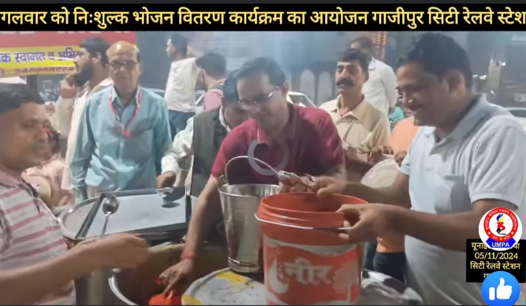 गाजीपुर (यू. पी.)। समाज के कमजोर वर्ग के लिए अपनी जिम्मेदारी निभाते हुए, यूनाइटेड मीडिया पत्रकार एसोसिएशन गाजीपुर ने 5 नवंबर 2024 मंगलवार को सिटी रेलवे स्टेशन पर गरीब, असहाय और जरूरतमंद लोगों के लिए नि:शुल्क भोजन वितरण कार्यक्रम का आयोजन किया। इस कार्यक्रम का उद्देश्य समाज में वंचित वर्ग के प्रति संवेदनशीलता और सहायता की भावना को बढ़ावा देना था।