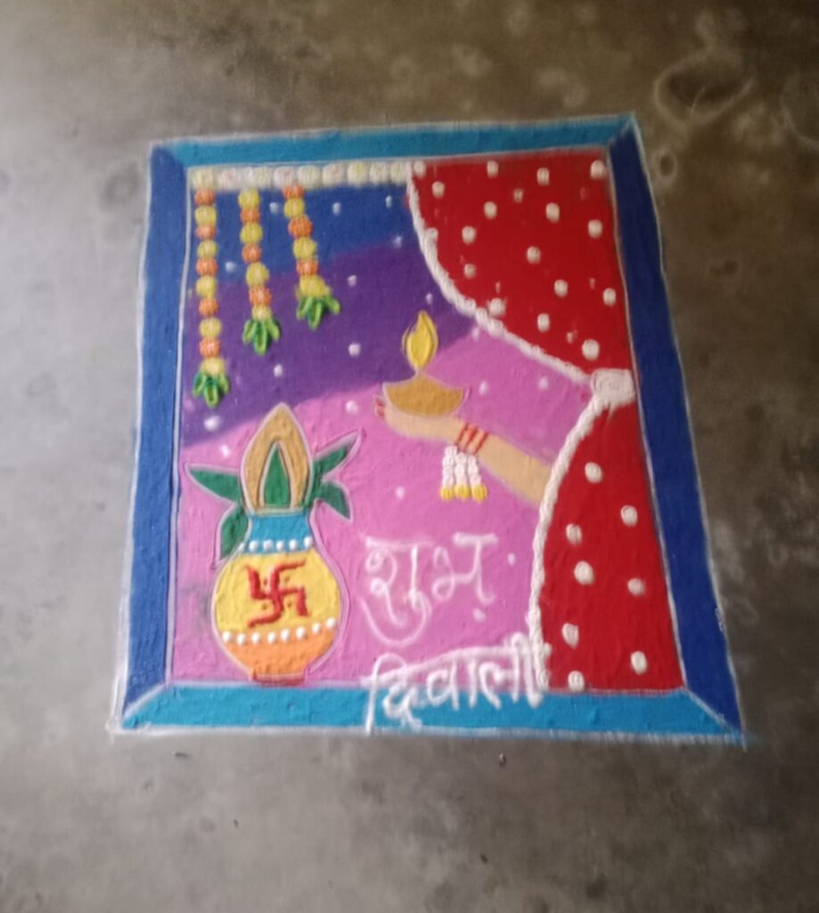 रंगोलिया को देखकर प्रधानाचार्य भाव विभोर हो गई बच्चों ने डिजिटल इंडिया पर्यावरण संरक्षण जैसे कई रंगोलिया को जमीन पर उतारा इस दौरान शिक्षण संस्था के प्रमुख में बच्चों के उत्साह को बढ़ाया और उन्हें दिवाली के शुभ अवसर पर होने वाले वायु प्रदूषण से बचने की सलाह दी इस मौके पर शिक्षण संस्था के प्रमुख अध्यापक अभिषेक पांडे, अमित दुबे ,प्रदीप श्रीवास्तव, अनुराग विश्वकर्मा, मुन्नीलाल कुमार ,कृष्णा विश्वकर्मा ,राहुल गिरी ,प्रमुख रूप से उपस्थित रहे इस दौरान सहयोगियों को अजय पांडे जी के द्वारा मिष्ठान वितरित कर दिवाली की शुभकामनाएं दी गई।