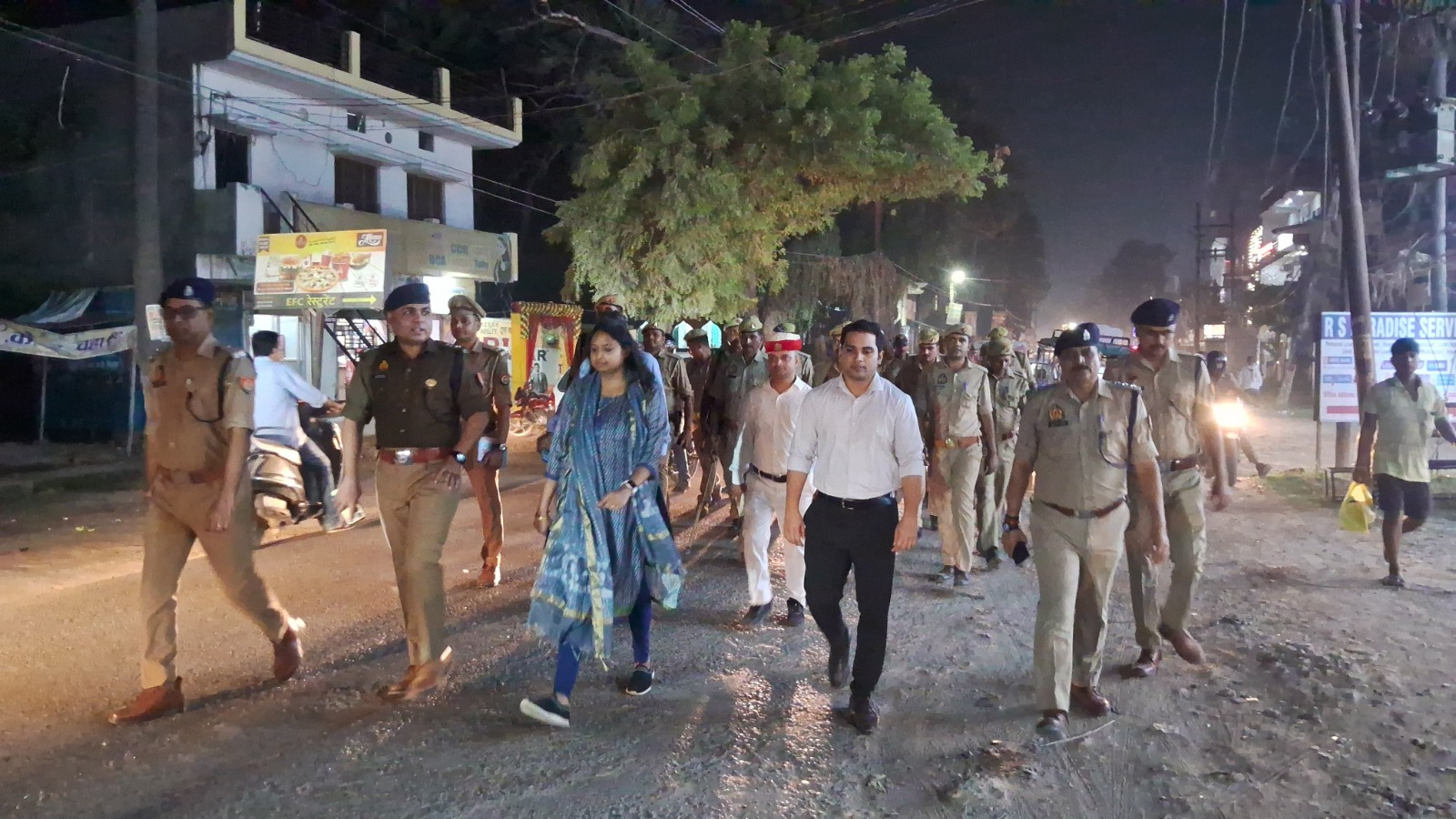 गाजीपुर – जिलाधिकारी आर्यका अखौरी एवं पुलिस अधीक्षक डा0 ईरज राजा ने आगामी त्यौहार धनतेरस, दीपावली, गोवर्धन पूजा, डाला छठ, देव दीपावली की सुरक्षा व्यवस्था बनाये रखने के दृष्टिगत  लंका मैदान ने लगाये गये पटाखों की दुकान का निरीक्षण कर सुरक्षा व्यवस्था का जायजा लिया तथा दुकानदारों से फायर सेप्टी, बालू, एवं अन्य सुरक्षा समाग्री रखने को कहा। इसके उपरान्त अधिकारी द्वय द्वारा  शहर के विभिन्न क्षेत्रों में रूट मार्च किया गया जिसमें लंका मैदान से चुंगी होते हुए आर के बी के, वंशी बाजार, सैनिक चौराहा तक पैदल गस्त कर  सुरक्षा व्यवस्था एवं शांती  बनाये रखने की अपील की गयी। इस अवसर पर उपजिलाधिकारी सदर, क्षेत्राधिकारी सदर, एवं अन्य अधिकारी, पुलिस बल मौजूद रहे।