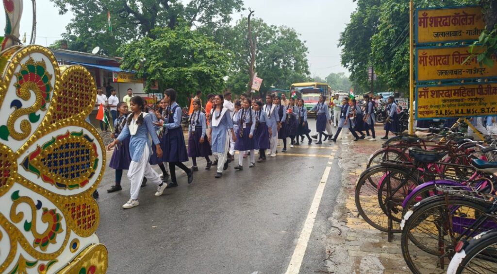 दुल्लहपुर के जलालाबाद से स्कूली बच्चों द्वारा हर घर तिरंगा अभियान के तहत सैकड़ो बच्चों ने हाथ में तिरंगा लेकर के भारत माता की जय के नारा लगाते हुए एक लंबी रैली निकाली जिसमें हजारों बच्चों ने भाग लिया यह रैली जलालाबाद चौराहा से चलकर की दुल्लहपुर बाजार के पुरुषोत्तम नगर होते हुए रेलवे स्टेशन के पीछे से अमारी गेट के तरफ गई उसके बाद झोटारी होते हुए बड़ा गांव पहुंचा इसके बाद दुल्लहपुर के चौहान मार्केट होते हुए वापस जलालाबाद की तरफ अपने मुख्य स्थान पर समाप्त हुई