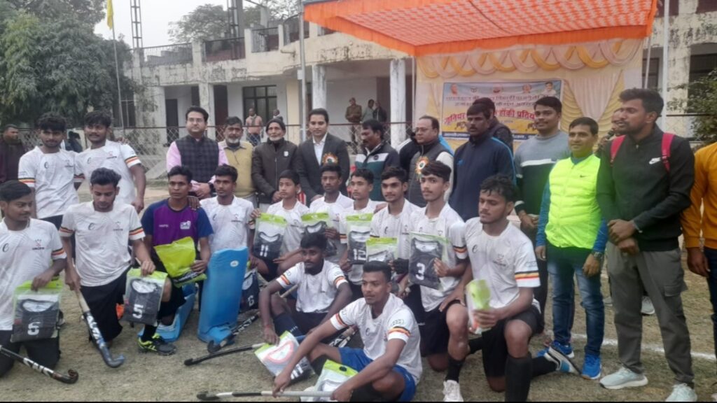 भारत रत्न श्री अटल बिहारी वाजपेयी जी के जन्म शताब्दी के शुभ अवसर पर आज दिनांक 25-12-2024 को जूनियर बालको की हॉकी प्रतियोगिता का आयोजन नेहरु स्टेडियम गोराबाजार गाजीपुर के प्रांगण में किया गया। इस प्रतियोगिता के पुरस्कार वितरण के मुख्य अतिथि श्री प्रखर उत्तम, उपजिलाधिकारी सदर गाजीपुर के कर कमलो द्वारा विजेता खिलाड़ियो को पुरस्कृत किया गया । श्री अरविन्द यादव क्रीड़ाघिकारी गाजीपुर द्वारा मुख्य अतिथि को बुके देकर स्वागत किया गया।