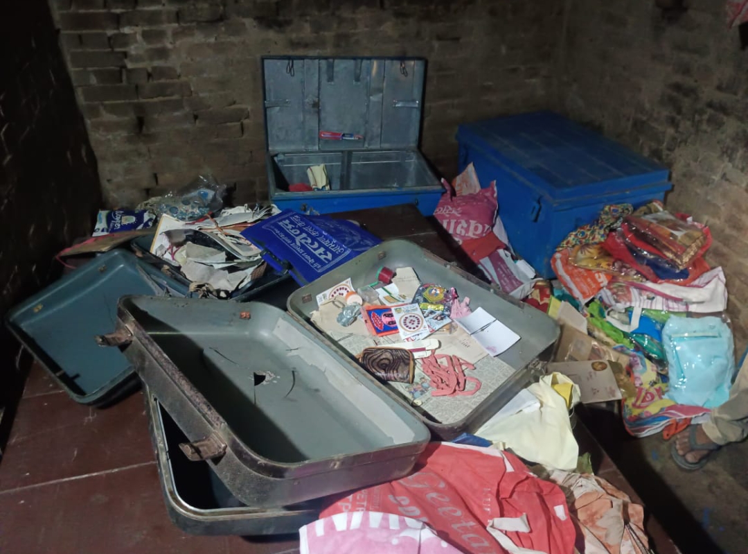 gगाजीपुर मरदह। छत के रास्ते घर में दाखिल होकर लाखो के आभूषण नकदी चोरी,थाना क्षेत्र के चंवर गांव में बीती रात्रि सोमवार में जयनरायन सिंह के घर में छत के रास्ते दाखिल होकर चोरों ने अस्सी हजार नकदी समेत लाखो रुपये के सोने-चाँदी के कीमती आभूषण चोरी कर लिया।पुलिस ने अज्ञात चोरों के विरुद्ध चोरी का मुकदमा दर्ज कर‌ छानबीन शुरू कर दी है।बीती रात्रि में जयनारायण सिंह घर के दरवाजे पर बाहर सोये थे परिवार के लोग ट्रांसफार्मर जलने से लाइट न होने से दो मंजिला मकान के छत पर सो रहे थे।इस दौरान घर के पिछवाड़े से छत के रास्ते मकान दाखिल हुए चोरों ने घर के चार कमरों का ताला तोड़कर उसमे रक्खे बक्शो को तोड़कर लाखो रुपये के दर्जनों की संख्या में सोने चॉदी के आभूषण एवं अस्सी हजार नकदी चोरी कर ली।चोरी के बाद चोरों ने सीढ़ी का दरवाजा बंद करते हुए घर के पिछवाड़े के दरवाजे से बाहर निकल कर बाहर से दरवाजा बंद करके फरार हो गए।सुबह जागने पर घर के कमरों के टूटे दरवाजे बिखरे पड़े सामान को देखकर परिवार के लोगो को चोरी की घटना की जानकारी हुई तो पैरों तले जमीन खिसक गई।मंगलवार की सुबह घर के पिछवाड़े झाड़ियों के पास तीन बक्से टूटी अवस्था में पड़े मिले।गृहस्वामी ने बताया कि आभूषण लड़की की शादी के लिए रखे गए थे।इस संबंध थानाध्यक्ष धर्मेंद्र पाण्डेय कौशल्या सिंह पत्नी जयनारायण सिंह की तहरीर पर पुलिस ने चोरों के विरुद्ध चोरी का मुकदमा दर्ज कर छानबीन किया जा रहा है।
