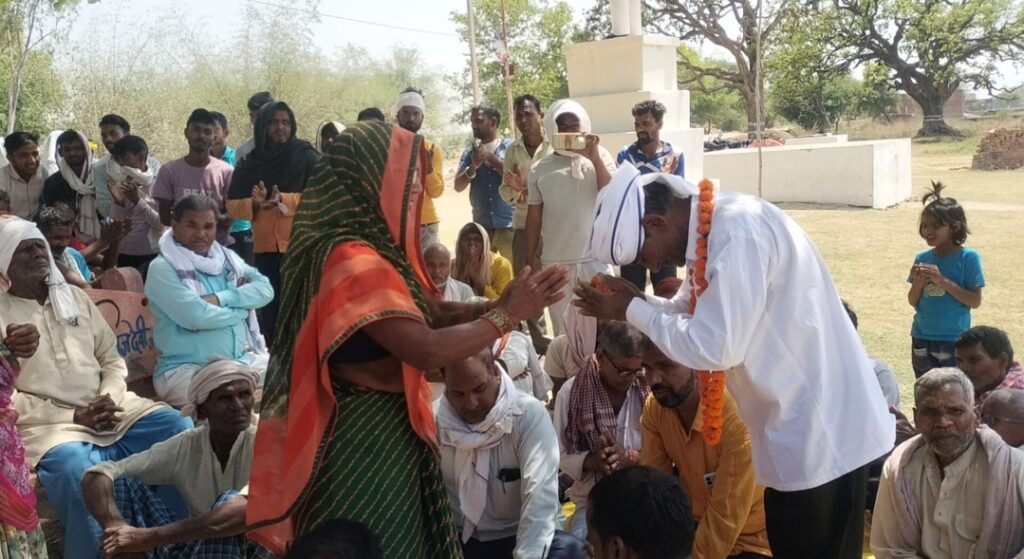 निरहू राम बने रविदास मन्दिर एवं अम्बेडकर स्मारक समिति के नये अध्यक्ष ।गाजीपुर के थाना भुडकुङा क्षेत्र के पदुमपुर मैगर राय गांव में रविदास मन्दिर एवं अम्बेडकर स्मारक समिति जो कि लगभग 1887-1988 में ग्रामवासी पदुमपुर मैगर राय खासकर स्व.मुखलाल राम,स्व.बेहफू राम,स्व. सुकुल राम, हरिनाथ राम, हरिजन राम, ननकू राम, राम दुलार राम, रामशरन भारती,लल्लन राम इत्यादि लोगों ने गठन किया था जिसका अध्यक्ष रामा राम को बनाया था। लेकिन 2020 में रामा राम पुत्र गरीब राम, गौतम राम अकेला पुत्र रामा राम ने बिना किसी गांव के लोगों को बताएं रविदास मंदिर अंबेडकर स्मारक समिति के नाम से फर्जी ढंग से ट्रस्ट पंजीकृत कराये जिस ट्रस्ट के उपनियम में स्वयं को मैनेजर ट्रस्टी और आजीवन वंशानुक्रम पारिवारिक संपत्ति के रूप में उपयोग करने तथा जमीन को विक्रय एवं रेहन रखने का अधिकार अंकित कराए थे । गांव के लोगों ने कई बार व्यक्तिगत व महापंचायत के माध्यमों से व बहुजन समाज पार्टी के जिला स्तर के बुद्धिजीवी नेताओं से समझाने का प्रयास किया तभी भी गौतम राव अकेला और रामा राम नहीं माने । जिससे कि ग्रामवासी व क्षेत्र वासियों ने काफी विचार – विमर्श के बाद नए अध्यक्ष माननीय निरहू राम का चयन सर्वसम्मति से किया। जिसमे की गांव के रूदल राम, रामदुलार राम,पलटू राम, शिवदत्त राम, रामप्रवेश राम, केशव राम,महेंद्र राम , कमलेश कुमार, रामदुलार राम, चंद्रिका राम, चंद्रिका राम, शैलेंद्र कुमार प्रकाश राम, रविंद्र कुमार, विशुंदर राम, बिशुन्नी राम, मोहन राम, प्रभुनाथ राम, नथुनी राम ग्रामवासी उपस्थित थे।