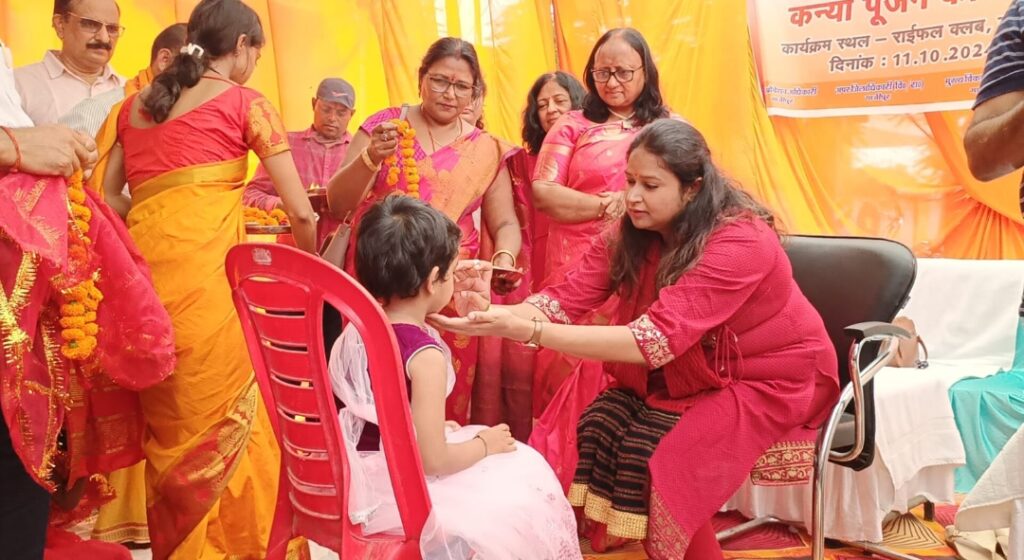 विशेष कन्या पूजन एवं प्रसाद ग्रहण कार्यक्रम के अवसर पर विधि विधान के साथ कन्या पूजन के शुभ अवसर पर उपस्थित कन्याओं को कुमकुम और अक्षत का टीका कर चुनरी ओड़ाकर पूर्ण विधि विधान के साथ पूजन-अर्चन किया गया।तत्पश्चात प्रत्येक कन्याओं को प्रसाद वितरण किया गया।इस अवसर पर कार्यक्रम में जिला प्रोबेशन अधिकारी संजय कुमार सोनी, जिला समाज कल्याण अधिकारी रामनगीना यादव, प्रभारी जिला कार्यक्रम अधिकारी, महिला कल्याण विभाग के स्टॉफ ,आंगनवाड़ी परियोजना से स्टॉफ भी उपस्थित रहे।