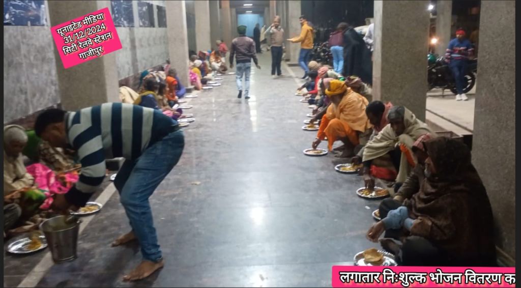गाजीपुर: यूनाइटेड मीडिया पत्रकार एसोसिएशन द्वारा 31 दिसंबर 2024 को सिटी रेलवे स्टेशन गाजीपुर पर एक सामाजिक पहल के तहत निशुल्क भोजन वितरण कार्यक्रम का आयोजन किया गया। इस आयोजन का उद्देश्य समाज के कमजोर वर्ग के लोगों को राहत प्रदान करना था, जिन्हें रोज़ाना भोजन की परेशानी का सामना करना पड़ता है।