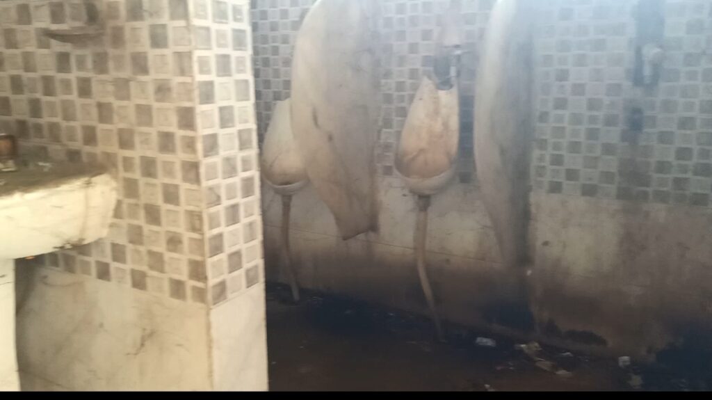 दीवाल पे ग्रेनाइट , नाली से भी गंदा सार्वजनिक शौचालय