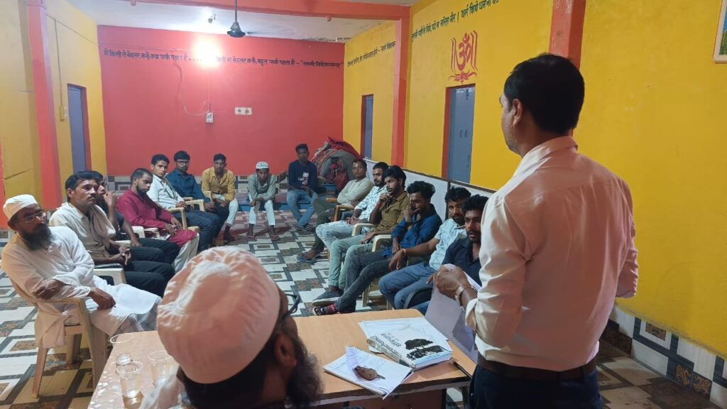 जो सौहार्द एवं बंधुता मंच के साथी कमाल अंसारी जी के नेतृत्व में हुआ। कार्यक्रम में मौलाना आजाद के संघर्ष देश के लिए किए गए कार्यों पर चर्चा हुआ। साथ ही उपस्थित लोगों को यह बताने का प्रयास किया गया कि हमारे आसपास या कहीं दूर पे हुई घटना का हमारे ऊपर कितना प्रभाव पड़ता है। और उससे हमारी धारणा कैसी बनती है। जिसके लिए एक एक्टिविटी किया गया जिसमें सांप्रदायिक हिंसा का एक न्यूज़ का फोटो कॉपी करा कर सभी लोगों को बारी -बारी पाढवाया गया और उस न्यूज़ को पढ़कर उनके अंदर क्या भाव जागृत हो रहे हैं या क्या धारणाएं बन रही है। यह जानने का प्रयास किया गया। जिसमें अधिकतर लोगों ने कहा कि बंधुता के कमी के कारण यह हिंसा हो रही है तथा बहुत से लोगों ने कहा कि संवाद हीनता तथा एक दूसरे पर विश्वास की कमी के कारण इस तरह की घटनाएं हो रही है वहीं दूसरी एक्टिविटी के कड़ी में एक ऐसी न्यूज़ जो समाज को बंधुता का संदेश दे रही होती है जिसमें हिंदू लोग मुस्लिम त्योहार मोहर्रम को धूमधाम से मनाते हैं इस पर लोगों की प्रतिक्रिया लेने पर लोगों ने कहा कि इसमें लोगों के अंदर एक दूसरे के प्रति प्रेम है तथा परस्पर संवाद भी होता है उनके जवाब के बाद उनसे यह भी पूछा गया कि आप किस तरह का समाज चाहते हैं। सभी लोगों ने एक साथ मिलकर प्रेम भाईचारा बंधुत्व के साथ रहने के लिए बताया तब सौहार्द एवं बंधुत्व मंच के संचालक हिमांशु मौर्य द्वारा कहा गया कि ऐसा समाज बनाने के लिए हम लोगों को मिलकर इस मुहिम को आगे बढ़ना होगा तथा सौहार्द एवं बंधुत्व मंच से जुड़कर स्वयं के स्तर पर परिवार के स्तर पर तथा समुदाय के स्तर पर संवैधानिक मूल्यों को जानना मानना तथा जीना होगा साथ ही वहां हमारे मार्गदर्शन करने पहुंचे आदरणी मनोज जी ने सौहार्द एवं बंधुत्व मंच के उद्देश्य को सभी साथियों को बहुत अच्छे से समझाएं । उपस्थित कार्यक्रम के अध्यक्ष मौलाना इकरामुद्दीन जी ने एकता और सौहार्द की बात कही वही कमल अंसारी जी ने मौलाना अबुल कलाम आजाद जी के जीवनी पर प्रकाश डाला।